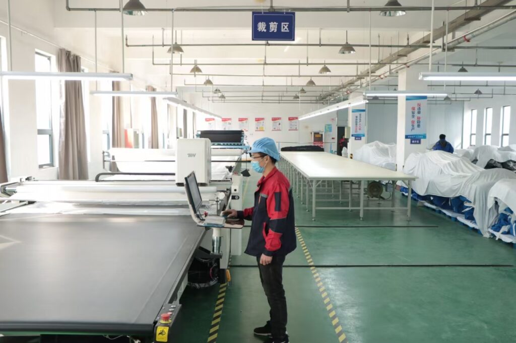 生地の裁断〜印刷〜縫製まで、一貫生産しています。